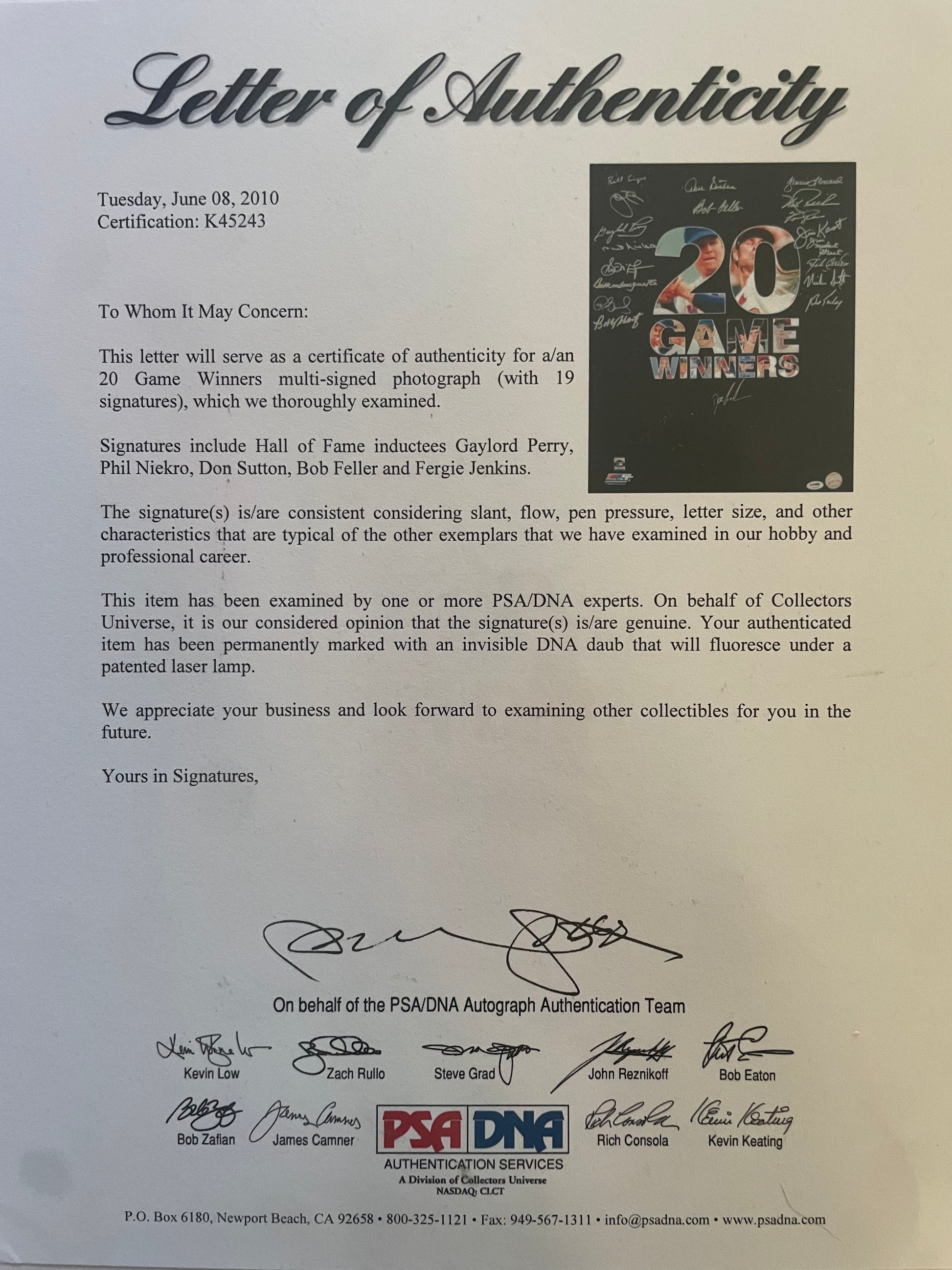 20 Game Winners Multi-Signed Autographed Baseball 16x20 Photo PSA COA