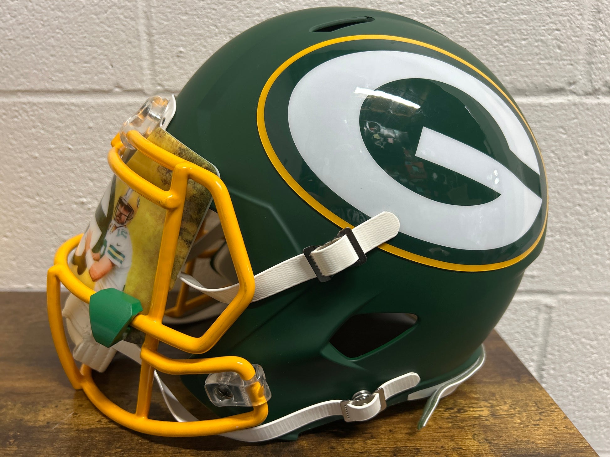 Aaron Rodgers AMP Specialty Autographed Full Size Helmet Green Bay Packers Fanatics COA with visor