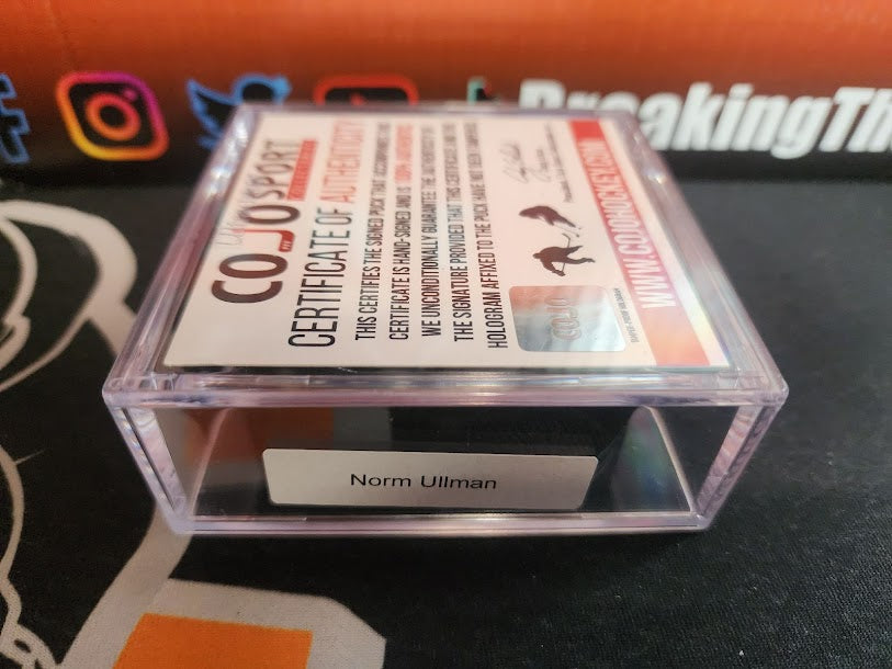 Norm Ullman Autographed HOF Inscribed Puck Maple Leafs